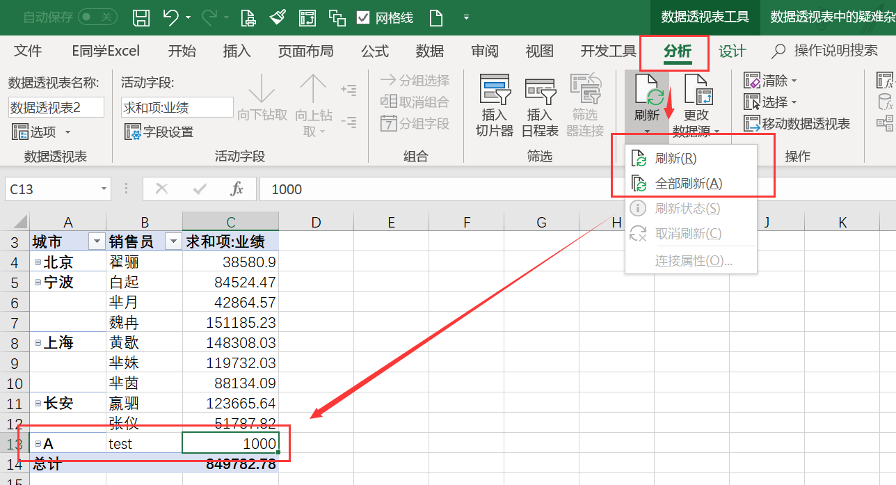 当数据源增加时,无论哪种方法仅需要在数据透视表中点击刷新按钮即可完成数据更新。